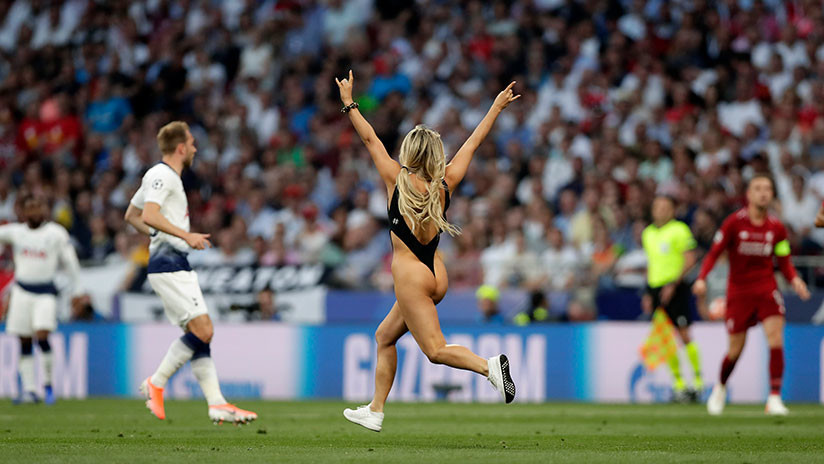 Las redes sociales han reaccionado rápidamente ante la invasión de la cancha que protagonizó una mujer durante el primer tiempo de la final de la Liga de Campeones que se desarrolló este sábado en Madrid. La joven, identificada como Kinsey Wolanski, corrió por el campo de juego y a los pocos segundos fue atrapada por personal del seguridad.